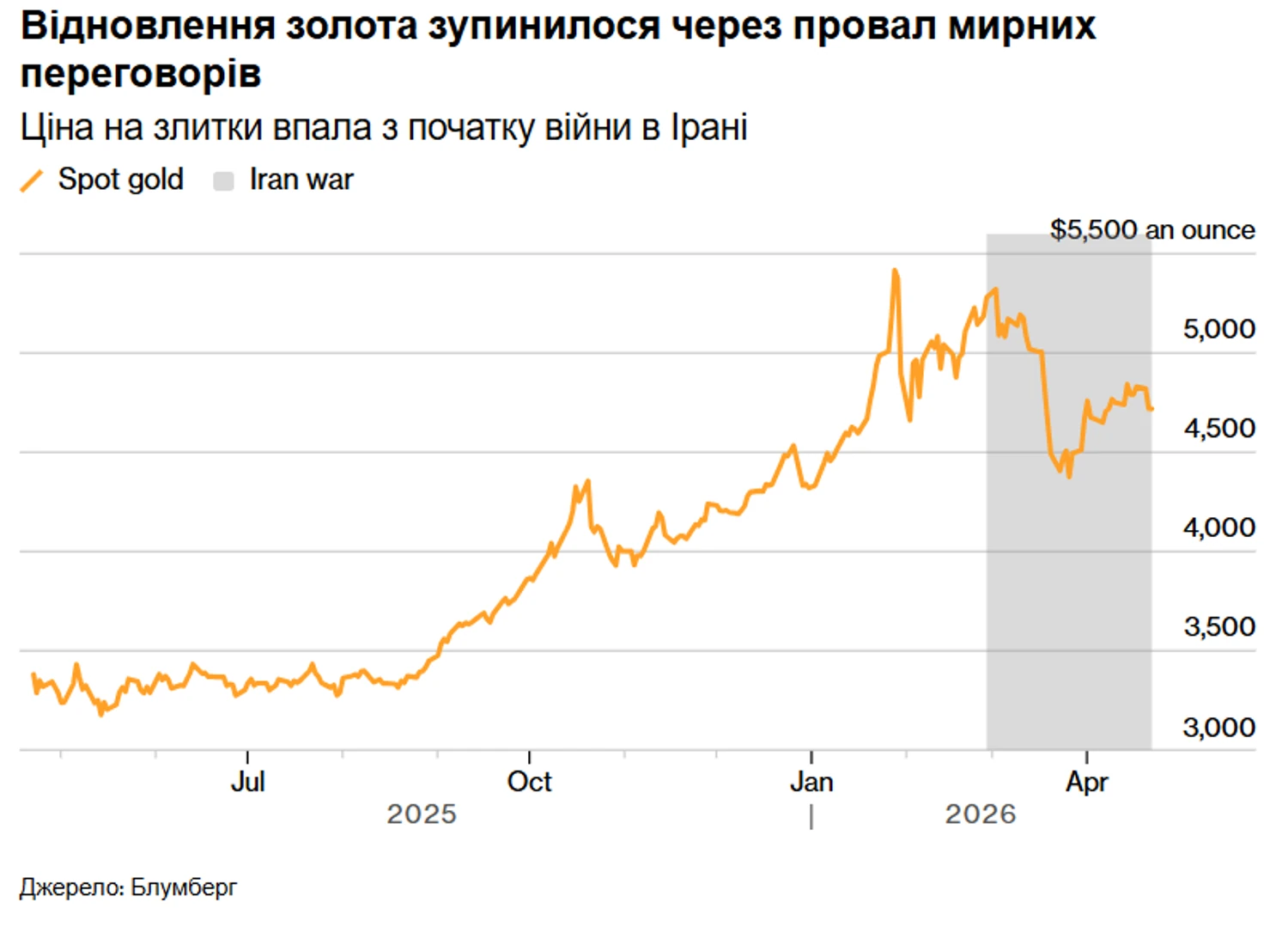 Золото потеряло более 10% с начала конфликта, но в последние недели колеблется в относительно узком диапазоне.