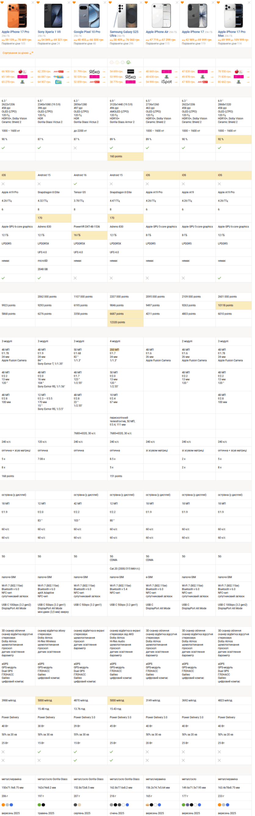 По сравнению с другими моделями iPhone 17, Pro занимает место топового флагмана «среднего формата». Базовая модель iPhone 17 стартует от 42 989 гривен, тонкий и легкий iPhone Air от 47 719 гривен, а iPhone 17 Pro Max — от 69 999 гривен.