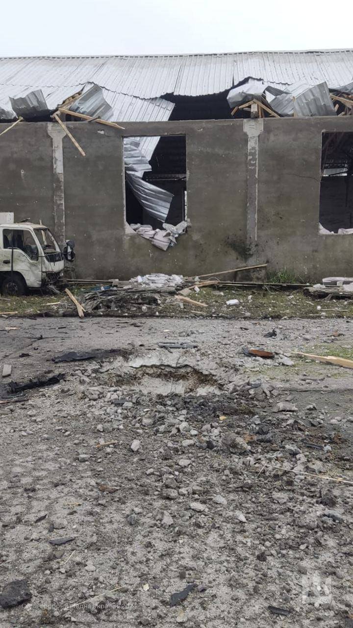 Є і влучання. Ворожі дрони-камікадзе поцілили по території фермерського господарства. Пошкоджені складські будівлі та сільськогосподарську техніку.