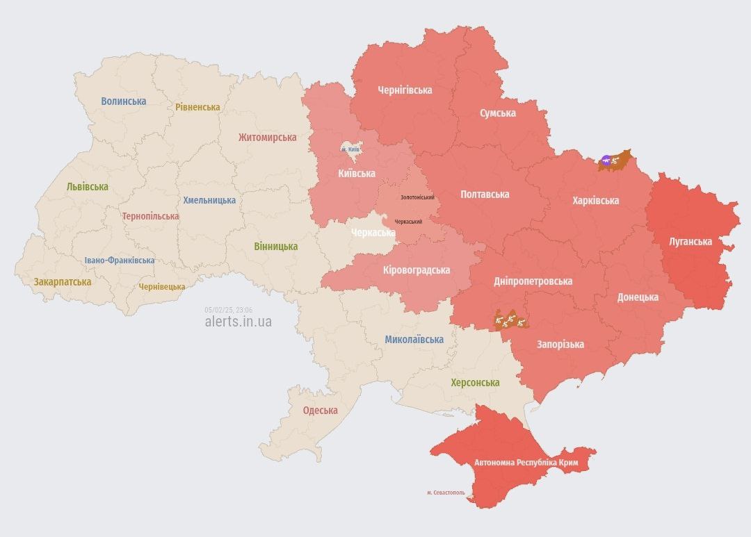 Источник: Карта воздушных тревог Украины (t.me/povitryanatrivogaaa)