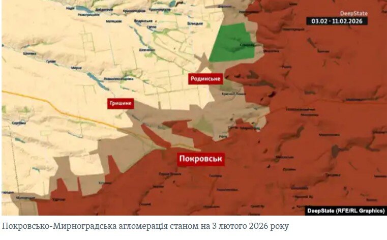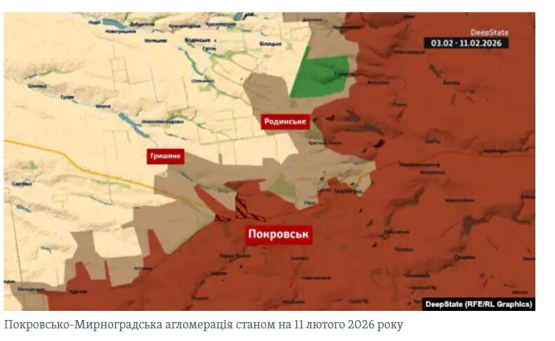 По данным на 12 февраля, агрессор контролирует около 95% города. В "серой зоне" остались лишь несколько кварталов на северо-западе в сторону села Гришино и небольшой участок на севере в направлении Родинского.