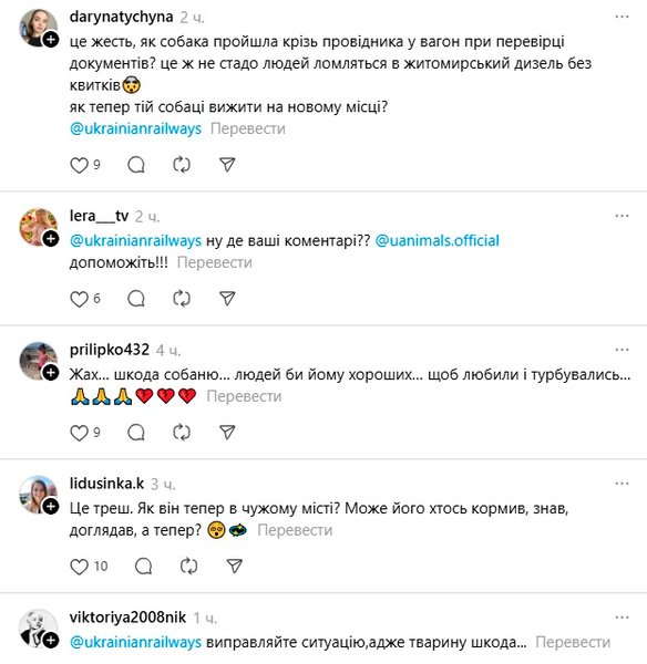 "Бляха, да уже не высаживали бы ребенка, а владельцев как-то искали", "Это жесть, как собака прошла мимо проводника в вагон при проверке документов? Это же не стадо людей ломятся в житомирский дизель без билетов. Как теперь той собаке выжить на новом месте?", "Это трэш. Как он теперь находится в чужом городе? Может, его кто-то кормил, знал, ухаживал, а теперь?" – пишут под видео.